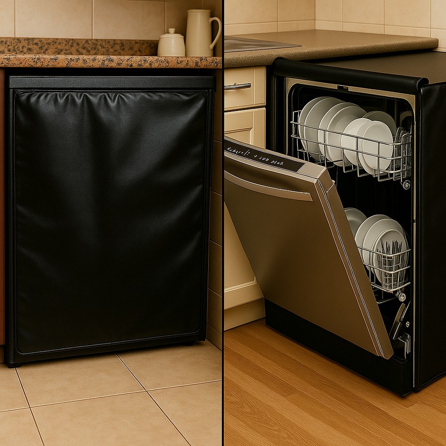غطاء غسالة أطباق جلد + طقم قواعد غسالة هدية