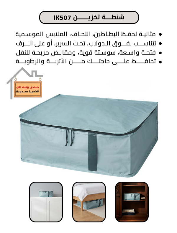 ✔️ مساحة تخزين واسعة: مثالية لحفظ البطاطين، اللحاف، الملابس الموسمية، وأي مستلزمات تانية