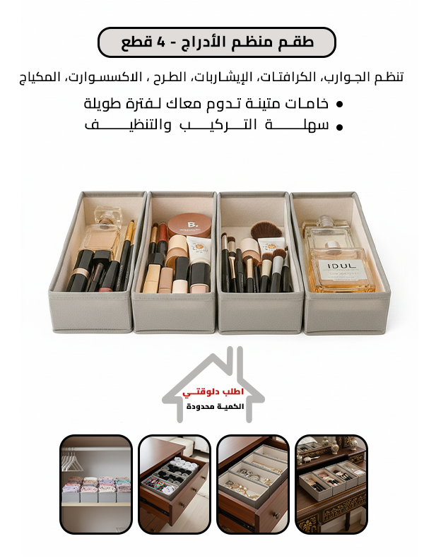 طقم منظم الأدراج 4 قطع هيخلصك من الفوضى ويخلي كل حاجة في مكانها 🪄